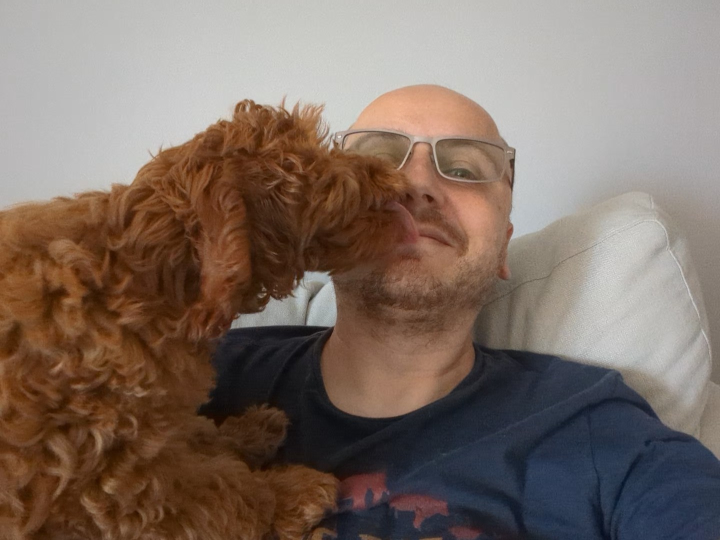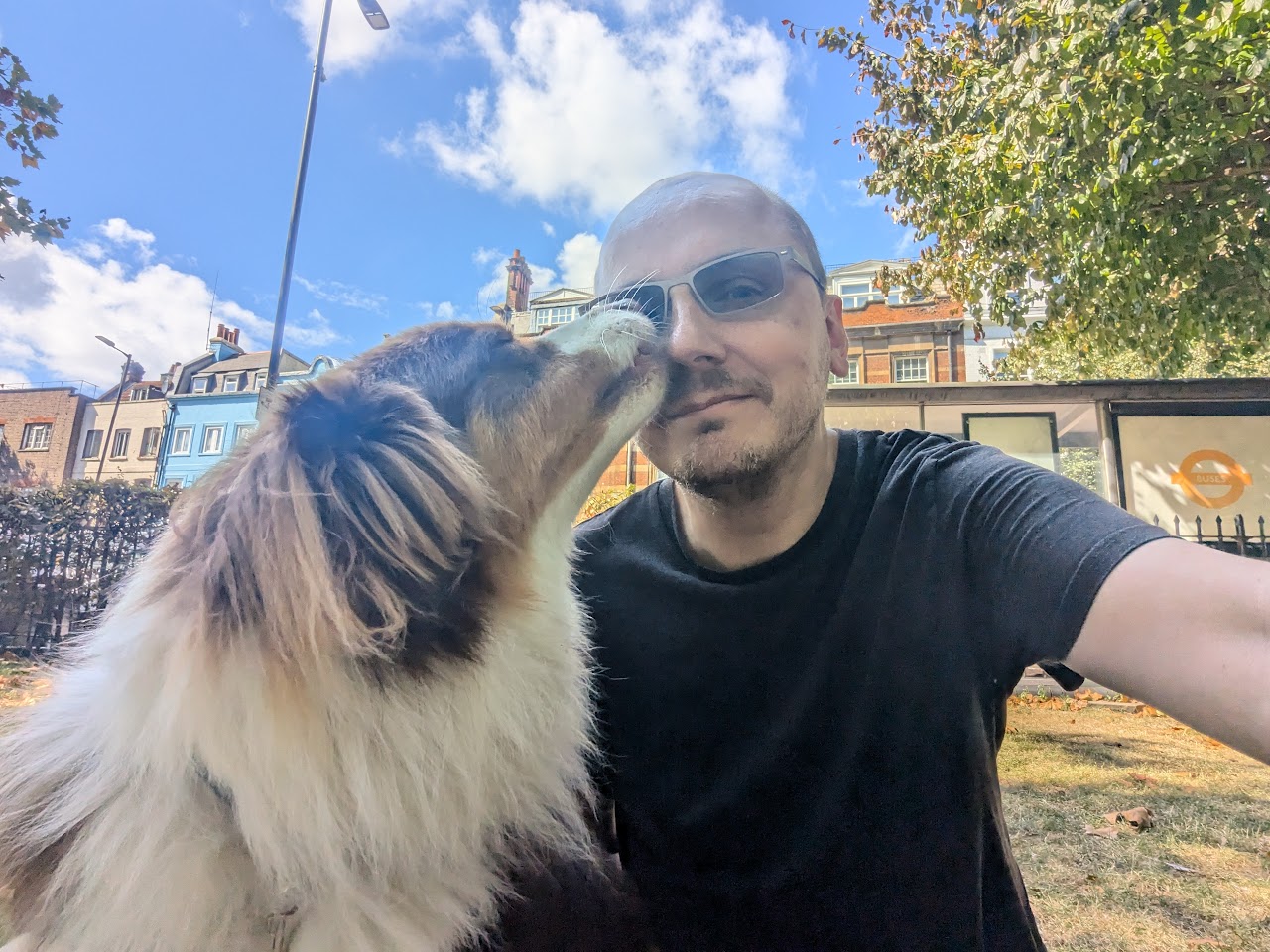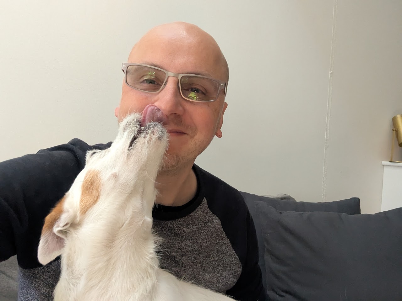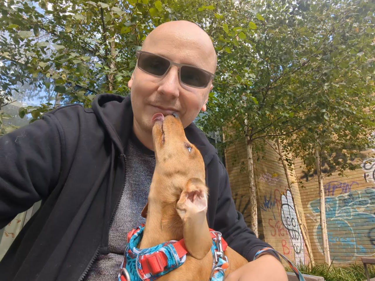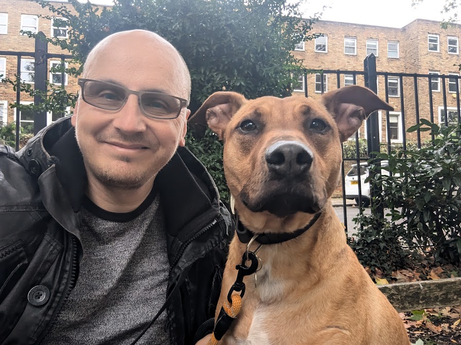 A Staffie-mix who was rescued from an unwanted litter at six months, Koda hadn't been walked, socialised or habituated (i.e. acclimatised to typical experiences) during this crucial period for puppy development. As a result, he's anxious, slow to trust, and easily spooked – and he needs a little extra reassurance.